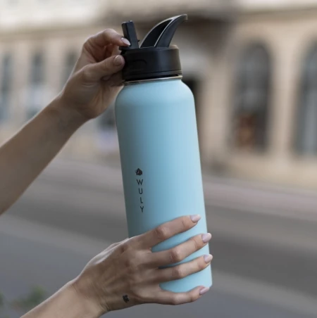 Butelka Wuly lubi towarzystwo. Nie wstydź się, podaj ją dalej, napoju wystarczy dla wszystkich. Niektórzy wolą pić prosto z niej, inni przelewają do kubka. Wybierz odpowiedni korek na każdą okazję. Wspólnie ją nosicie? Doczep linę i przypnij ją do osoby, na którą teraz wypadła kolej.