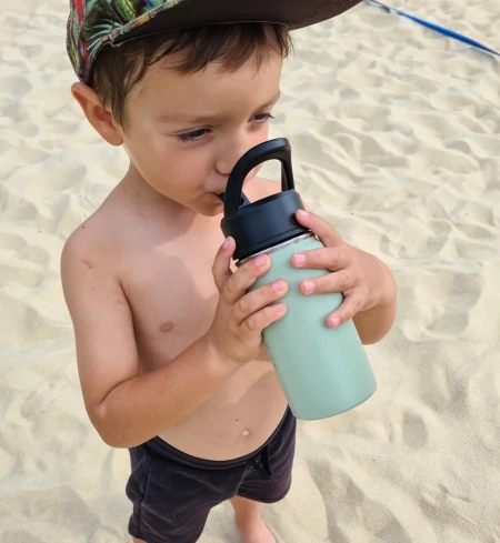 Dzieci uwielbiają tę butelkę, to prawda. Mały rozmiar jest bardzo uroczy. Jest łatwa do noszenia nawet dla malucha, na zajęcia, plac zabaw lub wycieczkę do parku. Odpinany pasek dodaje odrobinę zabawy i sprawia, że jest jeszcze łatwiejsza do noszenia. Świetny dla najmłodszych z kubkiem niekapkiem, ale wymienne i wodoszczelne pokrywki rosną wraz z dzieckiem. Po założeniu prostej zakrętki butelka nadaje się również do jedzenia lub owocowych przekąsek. Nawet dorośli pokochają ten rozmiar, pasuje do kawy na przejażdżkę. Wrzuć ją do torby na ramię lub wyglądaj super uroczo na zajęciach jogi. Niezależnie od wieku, jest to świetna butelka na każdy dzień.